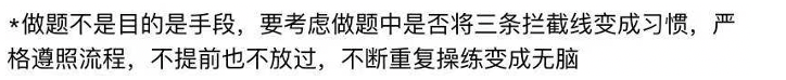 我在做SC的时候,把大仙的一句话时刻放在做题系统的右下角提醒自己,时刻鞭策自己我是否严格遵循拦截线,切忌盲目刷题。