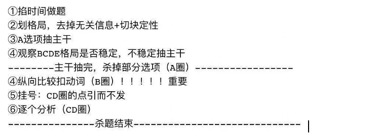 关于CR,我觉得核心在于逻辑链推导,特别是像我这种脑回路没有特别清晰的考生,一定要把自己逻辑过程写下来。我之前刷的几遍CR题库,其实很多是因为答案都记住了所以秒选,根本就不清楚推导过程。所以我根据几位大神的逻辑链模板进行了自己逻辑链推导过程,每天的做题量不多大概15-20题左右。除了做题我认为鸡精串讲也是一个很好的可以熟悉老头出题套路的方法,我大概每晚都来一两个课时。